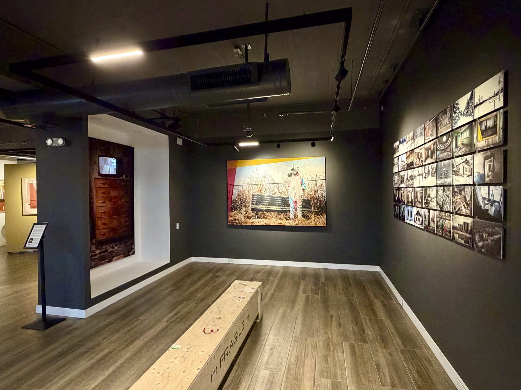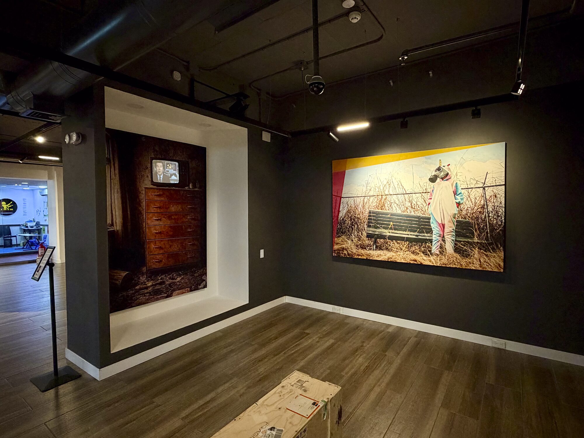 La exposición se completa con una instalación de videomapping, una fotografía intervenida y una selección de publicaciones, configurando un dispositivo que desplaza la experiencia hacia lo inmersivo y lo editorial.