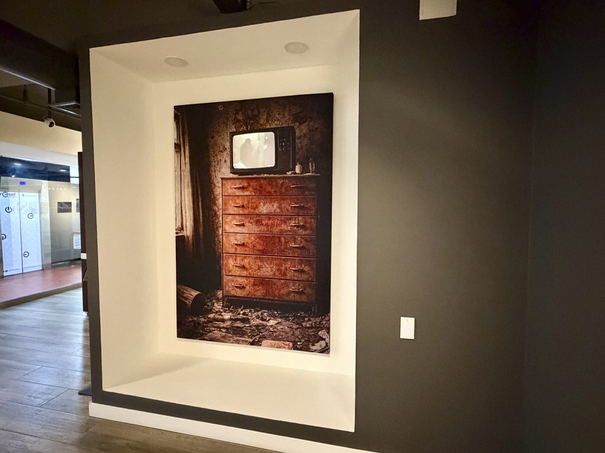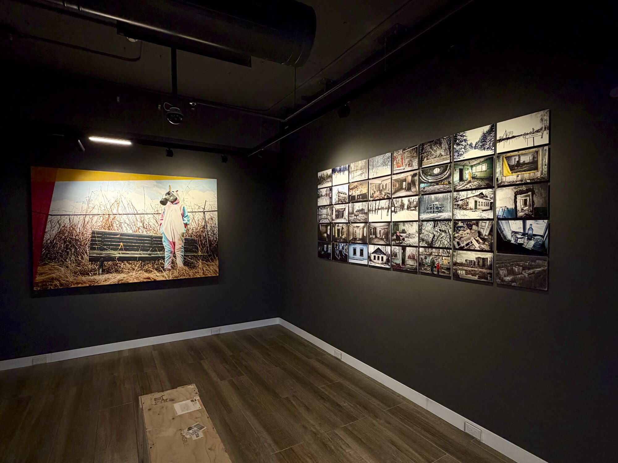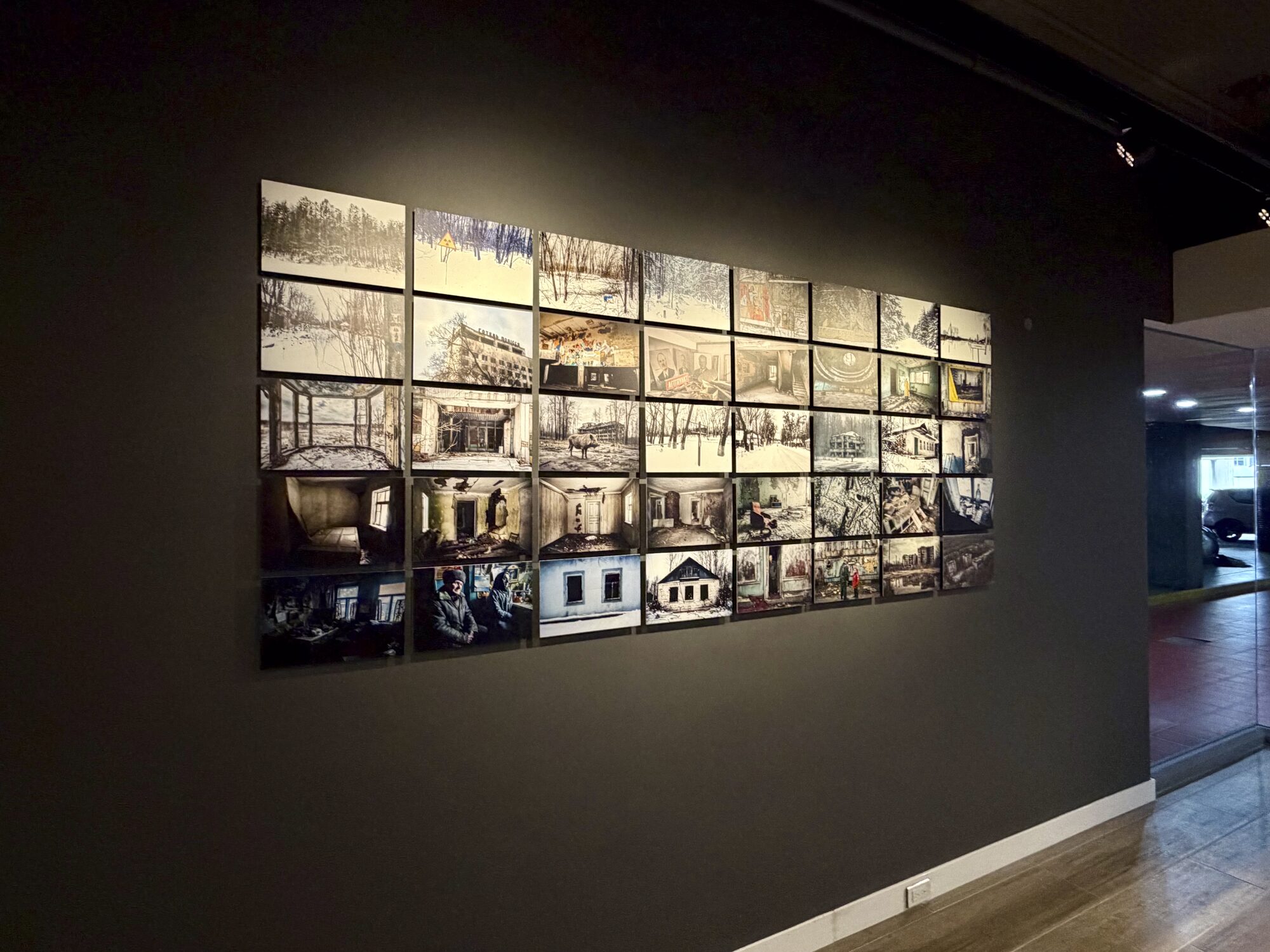 En sala, el proyecto se estructura a partir de 40 imágenes: 30 fotografías realizadas por el artista en Chernóbil durante el 30º aniversario del desastre y 10 imágenes generadas mediante inteligencia artificial que proyectan la década posterior hasta este 40º aniversario. Este cruce no plantea una oposición entre documento y simulación, sino una continuidad de la mirada entre lo registrado y lo imaginado.