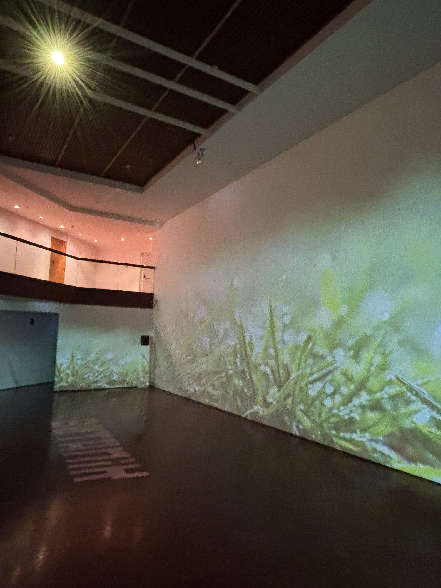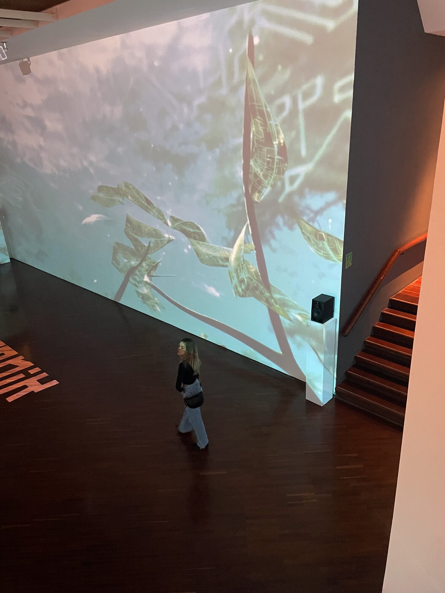 Nuestra era es un tejido de espacios híbridos: átomos y bits que conviven. El tiempo es relativo; su división es ficticia. La memoria divaga entre los datos que circulan de la mente humana a la inteligencia artificial, con el riesgo de estarlo haciendo sin mucho discernimiento. La naturaleza que se nos presenta aquí es una suma de versiones. Lo orgánico y lo digital abren para el espectador un horizonte sin referencias especificas. ¿Quién se expresa? ¿Una entidad llamada artista que termina diluyéndose en el proceso? ¿Las plantas de donde emergen las vibraciones que terminan siendo sonidos? ¿Un colectivo de inteligencias artificiales para las cuales todo ambiente y todo tiempo es simultáneo?