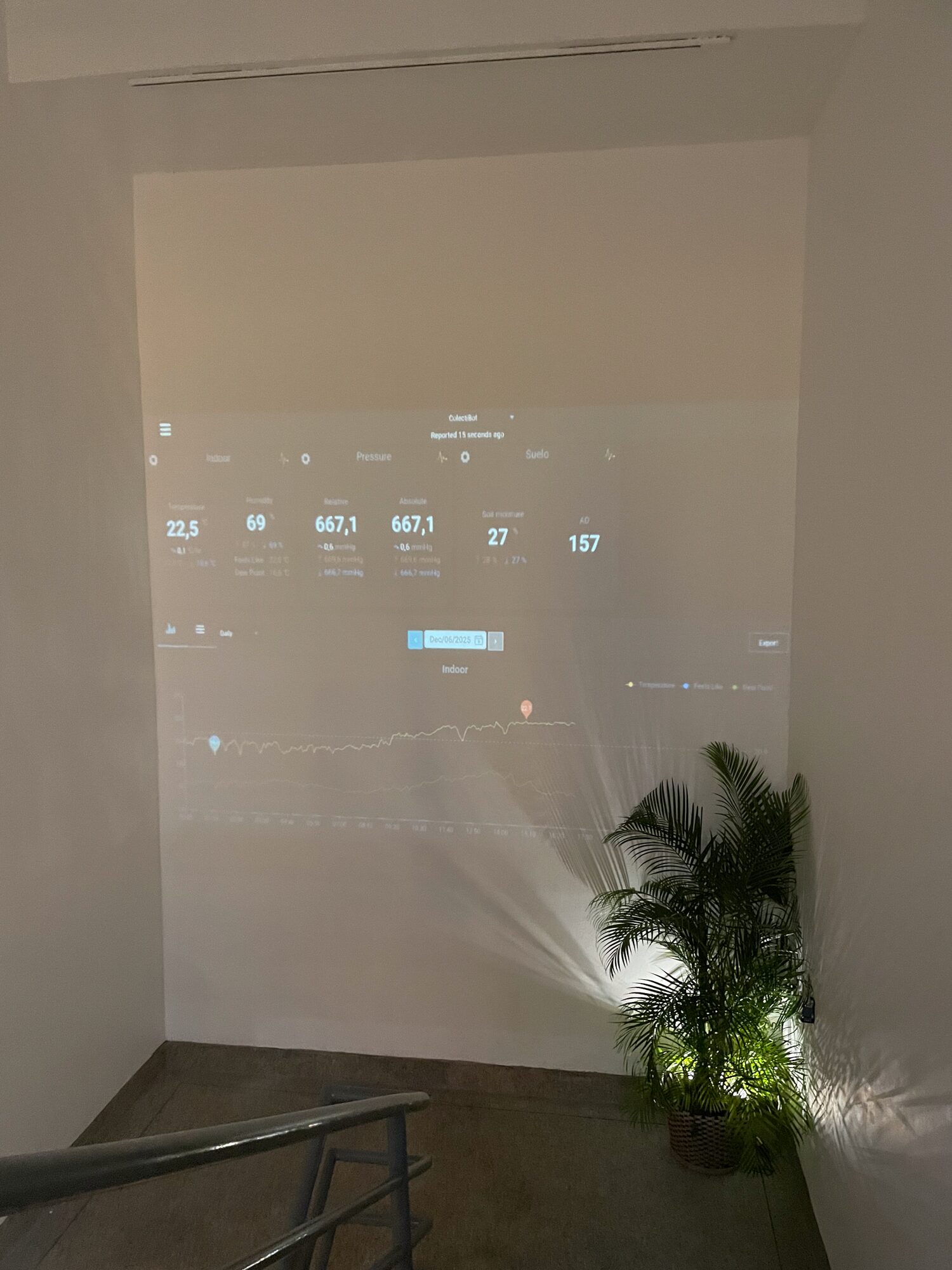 Las mediciones registradas por la estación meteorológica del CCAM —temperatura, viento, intensidad lumínica, humedad— junto con las señales bioeléctricas de una planta conectada al sistema constituyen la base de esta propuesta. En los trópicos, estos parámetros se comportan con una vitalidad cambiante: ráfagas cálidas, sombras que se abren tras la lluvia, corrientes que descienden de montañas y costas, brotes vegetales que avanzan incluso en superficies intervenidas. Estos datos, interpretados por inteligencias artificiales, generan imágenes y sonoridades en transformación continua. La sala deja de ser contenedor estable para convertirse en organismo inmersivo, impulsado por la energía del entorno.