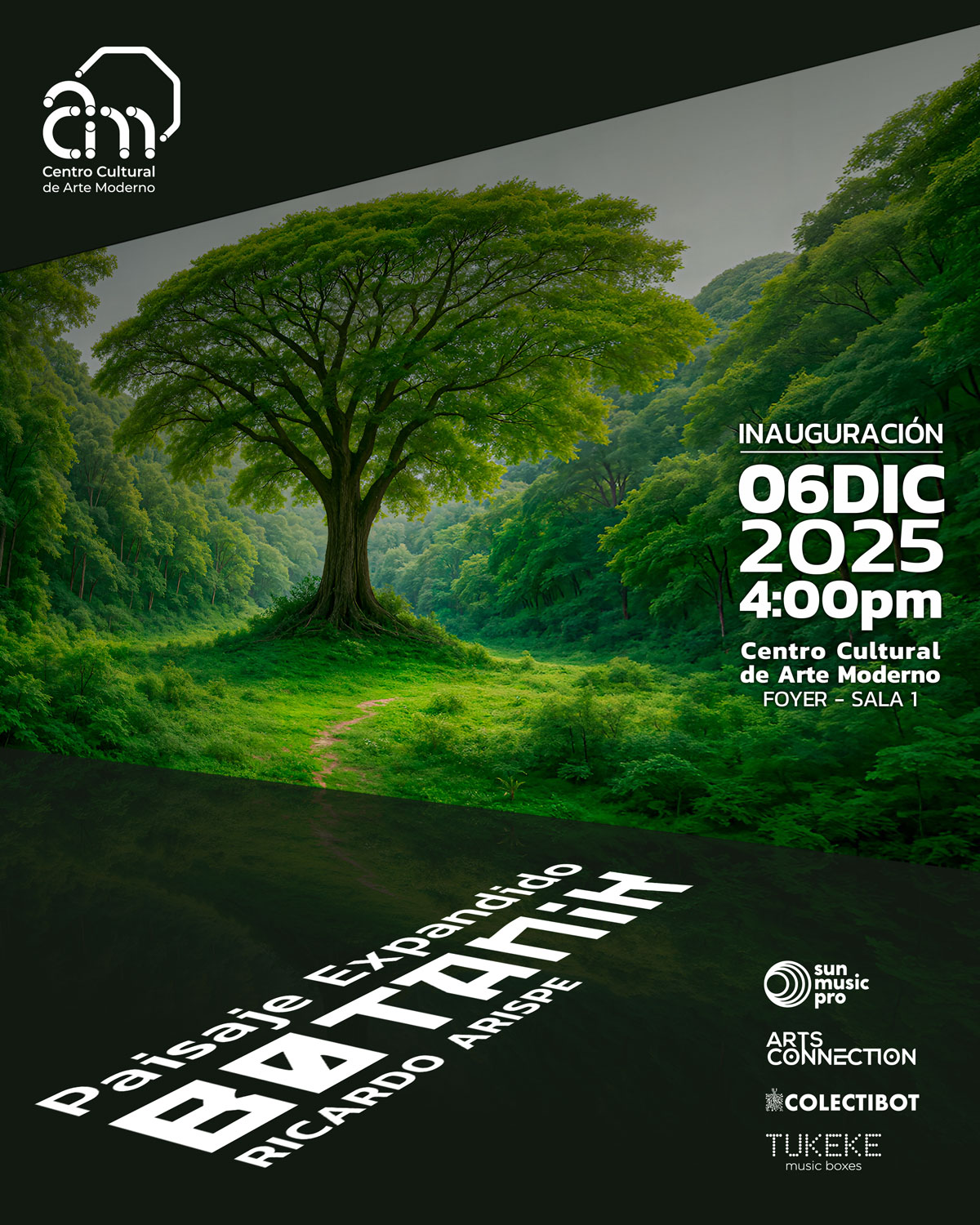 En nombre del Centro Cultural de Arte Moderno CCAM, extendemos nuestra cordial bienvenida a la inauguración de Paisaje Expandido. Botanik, de Ricardo Arispe.